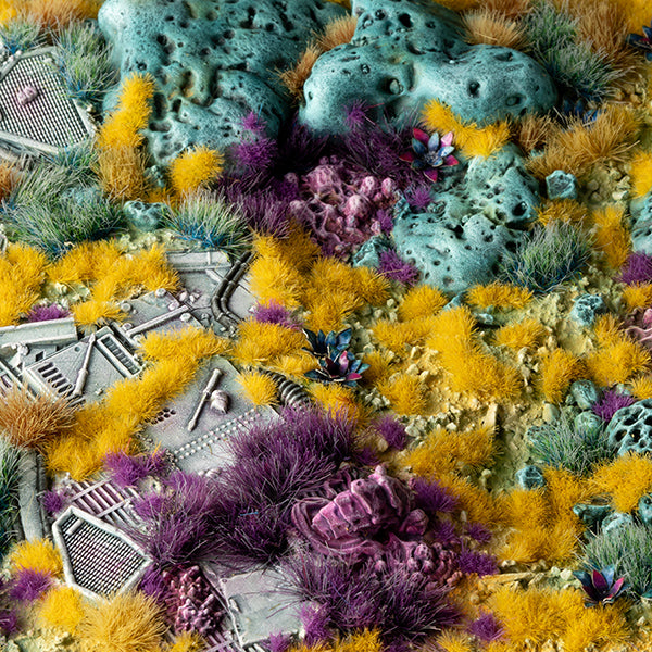 Low bright yellow tufts perfect to be used on Sci-Fi or fantasy scenes, alien worlds or coral reefs. In combination with other colors and sizes they provide a fascinating color and height variation to your scenes.