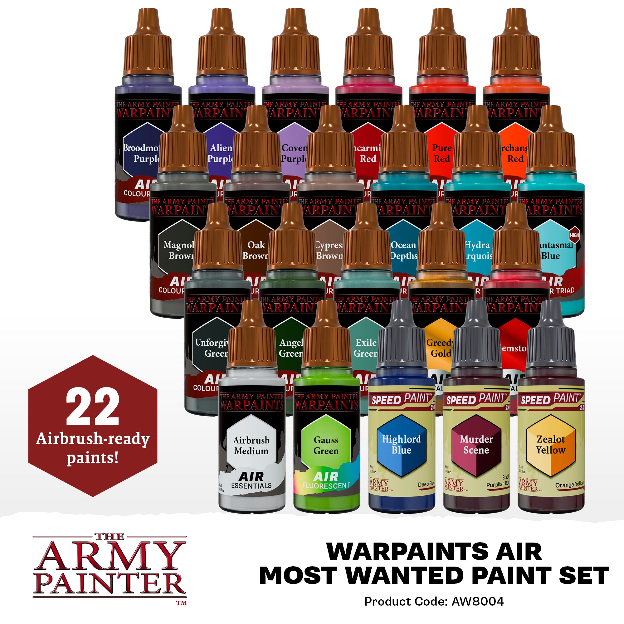 Warpaints Air Most Wanted set is your all-in-one arsenal of the most sought-after airbrush paints in The Army Painter range. Whether you're an airbrushing beginner or an experienced painter looking to streamline your workflow, this set delivers 22 fan-favorite colors—hand-selected for maximum versatility and impact on your miniatures.